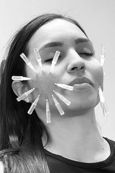 The sutures are completely dissolvable and even build collagen after theyโve dissolved. They are made from biodegradable materials called Polydioxanone that are invisible underneath the skin.